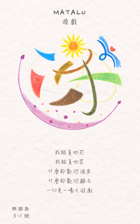 參天巨木下的旋轉木馬,懸浮在空中。一半白日,一半黑夜,不斷旋轉交替。每匹木馬上坐著不同時空的自己,不斷高高低低。旋轉木馬的出口設於正中央的彩繪木柱上,訪客可單獨離開,或說服其他自己一起離開。